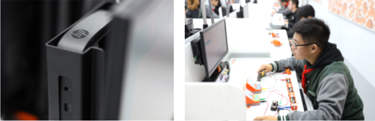 智慧云实验室学生端的操作平台集成了实验采集视频设备、学生终端硬件、物理和化学实验仪器等,桌面器材较多。惠普瘦客户机经过多重测试认证,具有出色的稳定性,为集成的各功能模块顺利运行提供了硬件保证;机身小巧精致,可悬挂在显示器后面,与视频设备进行组合,节约空间,保持桌面整洁有序,有助于学生保持良好心态,应对考试更加轻松。